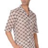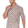 Add a touch of style to your wardrobe with our RYON OFF WHITE AND BROWN CHECK HALF SLEEVE CAMP COLLAR CROCHET SHIRT. This versatile shirt features a trendy camp collar and unique crochet detailing, making it the perfect choice for a casual yet fashionable look. Comfortable and stylish, this shirt is a must-have addition to any outfit.